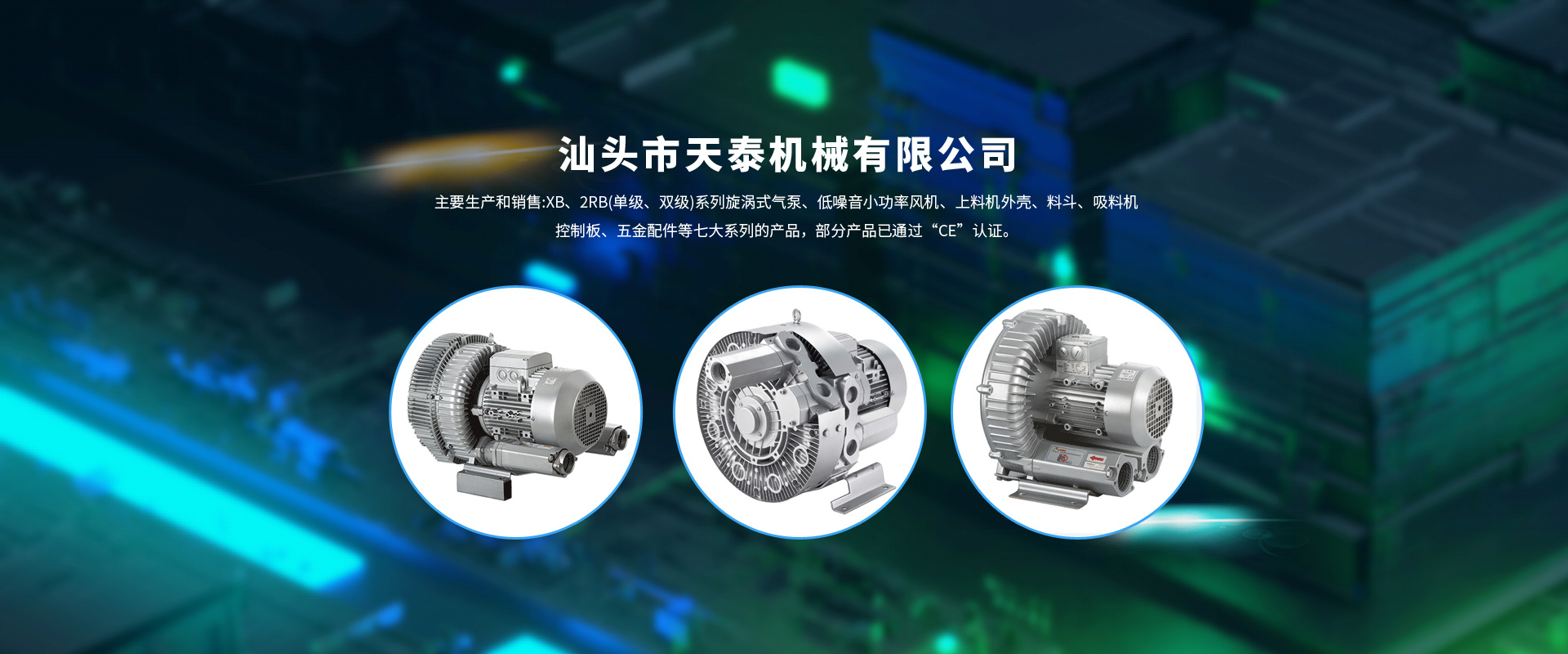 主要生產(chǎn)和銷(xiāo)售:XB、2RB(單級(jí)、雙級(jí))系列旋渦式氣泵、低噪音小功率風(fēng)機(jī)、上料機(jī)外殼、料斗、吸料機(jī)控制板、五金配件等七大系列的產(chǎn)品,部分產(chǎn)品已通過(guò)“CE”認(rèn)證。